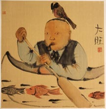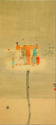 The lines of his adroit skills make his world more elegant and beautiful. In the tradition of Chinese ink drawing, the expression of the line is a basic and powerful technique, no artist can avoid if he is to prove he is a fine painter. Li Wang’s colors are different, not much like those you find in history. A lot of warm tone colors are applied, and less black ink. He lets his colors spread densely on rice paper, making his paintings original and unique.